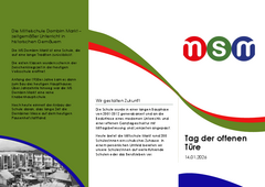 Am Mittwoch, den 14.01.26 von 09:00 bis 11:00 Uhr öffnet die Mittelschule Dornbirn Markt ihre Türen für dich! Entdecke und erlebe unsere Schule mit deiner Klasse oder deinen Eltern. Wir freuen uns auf dich!